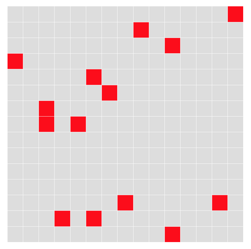 With the bomb classes added, if we look at the resulting webpage, we see a grid of grey and red cells, where the red cells are the bombs, and the greys are not.